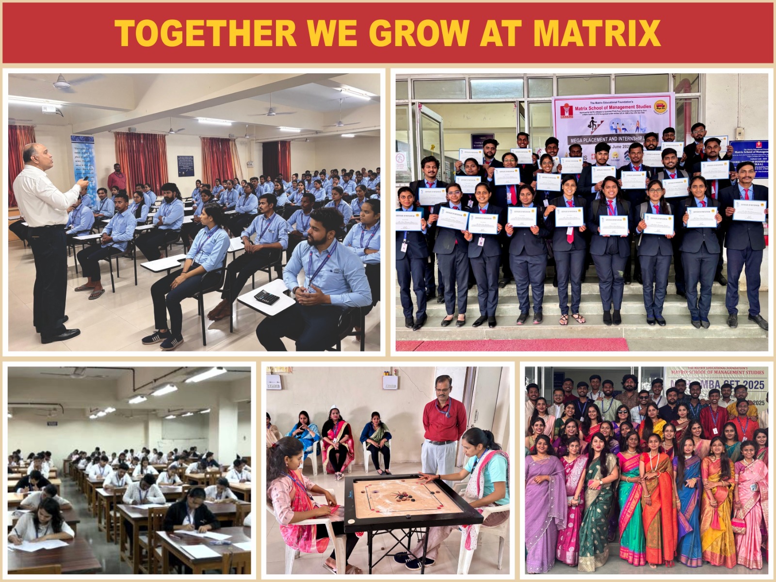 The Matrix Educational Foundation's established Matrix School of Management Studies in the year 2010. Prof. M. N. Navale, an eminent academician having rich industrial and educational experience is the Founder President of The Matrix Educational Foundation's and Prestigious Sinhgad Technical Education Society. The Founder Secretary Dr. Mrs. Shilpa R. Kulkarni is a versatile entrepreneur who is totally focused, committed and a result oriented lady heading the organization. The Matrix School of Management Studies offers MBA with 120 intake.