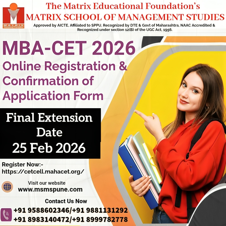 The Matrix Educational Foundation's established Matrix School of Management Studies in the year 2010. Prof. M. N. Navale, an eminent academician having rich industrial and educational experience is the Founder President of The Matrix Educational Foundation's and Prestigious Sinhgad Technical Education Society. The Founder Secretary Dr. Mrs. Shilpa R. Kulkarni is a versatile entrepreneur who is totally focused, committed and a result oriented lady heading the organization. The Matrix School of Management Studies offers MBA with 120 intake.